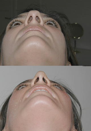 Rhinoplastie chirurgicale pointe carrée pointe plus fine et ronde Nez chirurgie avant après ¾ diminution taille plus petit contre plongée